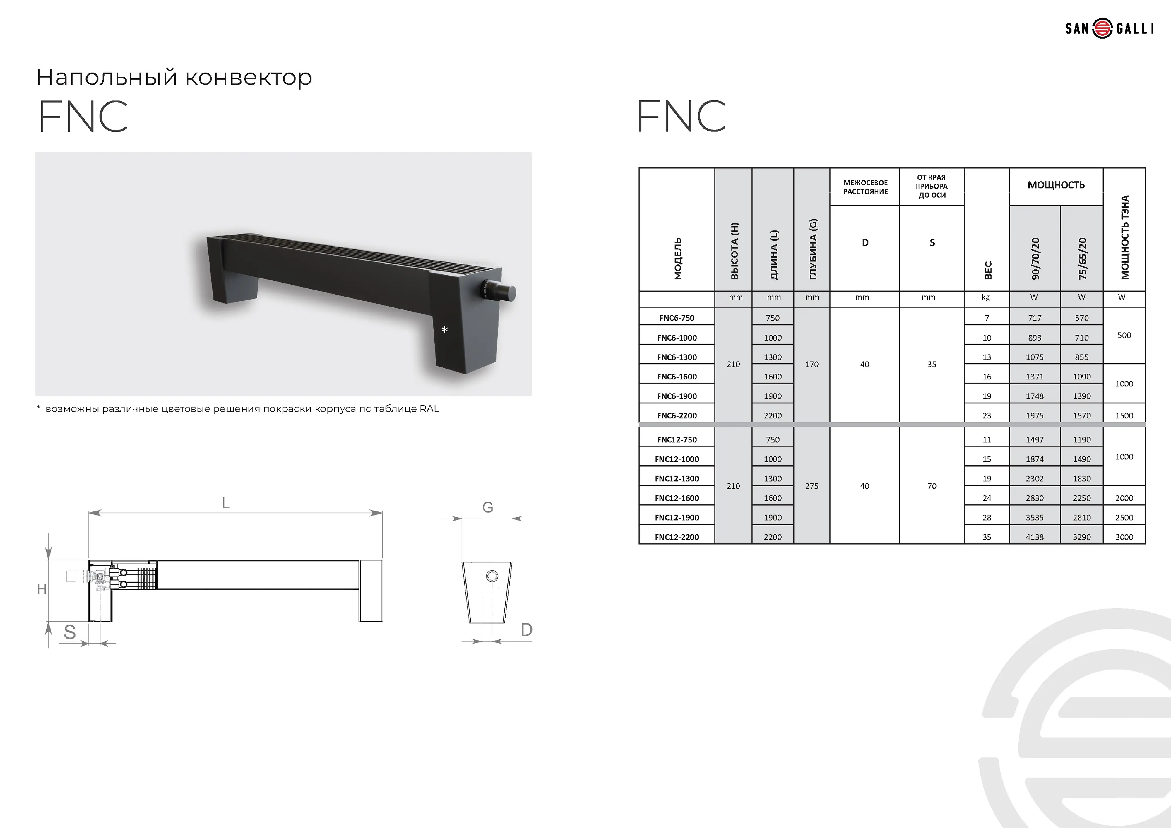 Напольный конвектор для систем отопления San Galli FNC (водяной).